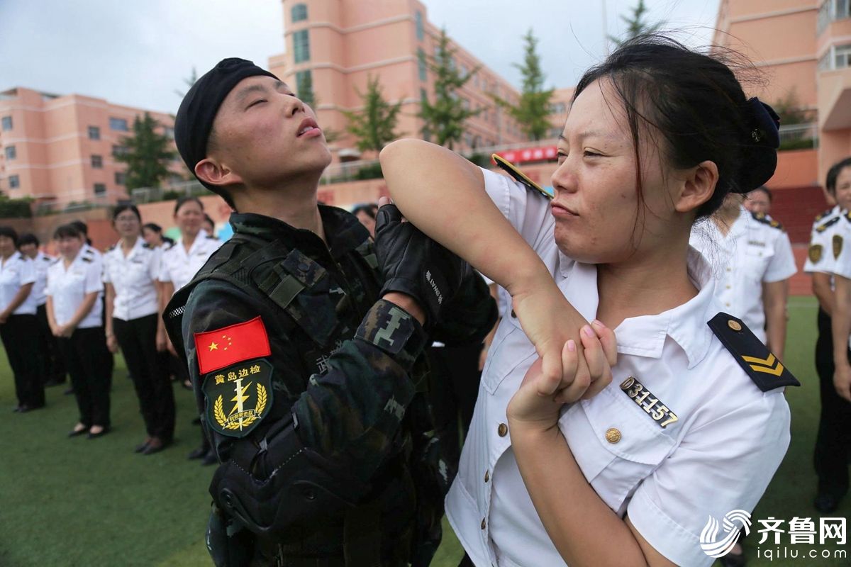 8月25日,山東青島。交運集團青島溫馨校車有限公司黃島分公司對全部200余名校車駕駛員、照管員進行反恐防暴培訓及軍事訓練,提高防衛技能,迎接新學期的校車運營和確保孩子乘車安全。武警戰士在訓練交運集團青島溫馨校車有限公司黃島分公司駕駛員和照管員擒拿格斗技術。