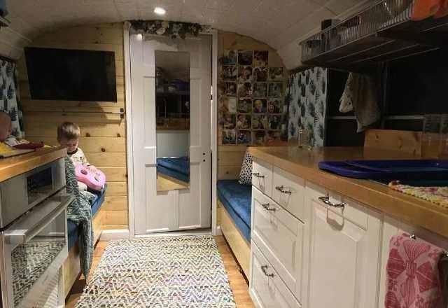 別看這輛校車的面積不大,但是經過改裝之后,里面的功能卻是非常齊全的,臥室,廚房,衛生間等等一應俱全,一家五口雖然住在這家一輛校車里面感覺有點擠了,但是卻非常的溫馨。