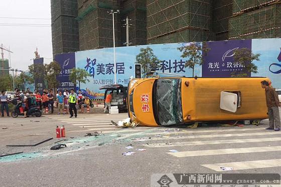 南寧5月29日訊(記者 鄧昶 陳思羽)5月29日上午7時10分,一輛接送學生的幼兒園校車在五象新區天譽花園附近,與一輛面包車發生碰撞,校車被撞至側翻,車上人員幸無大礙。...
