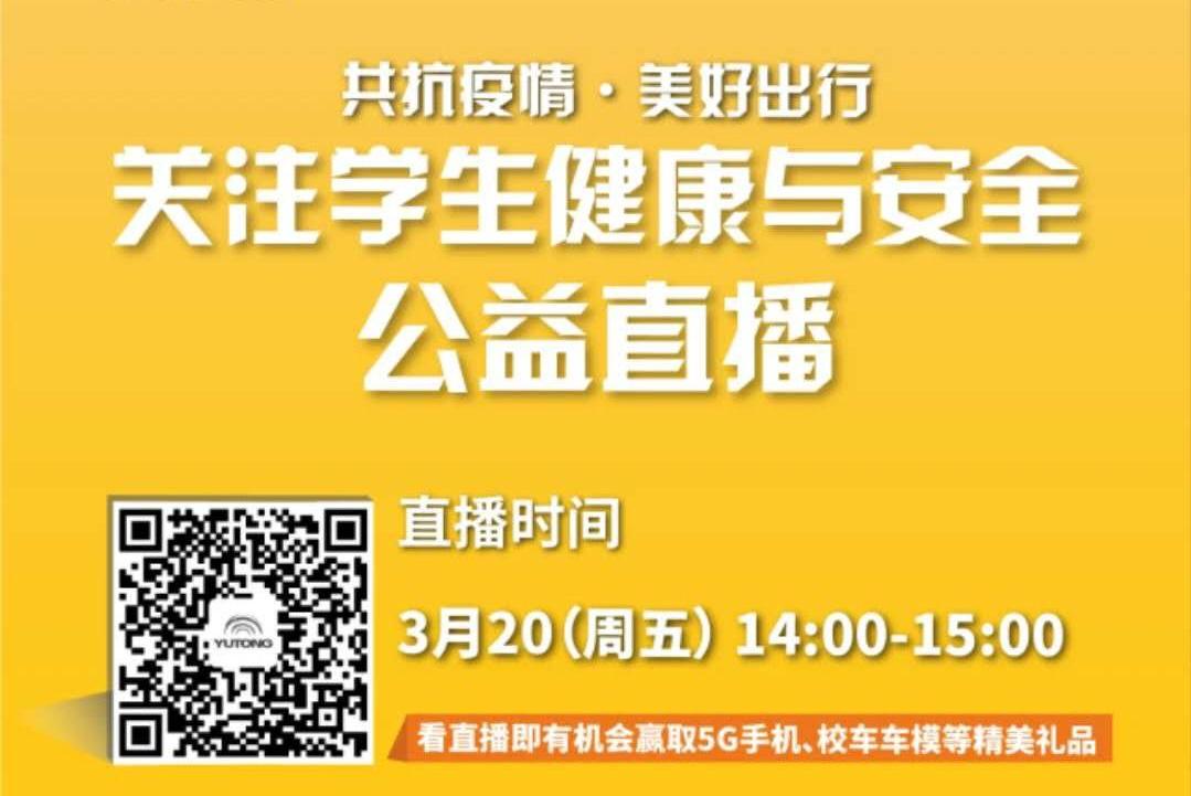 鎖定“關注學生健康與安全公益直播”,宇通客車聯合深圳壹基金公益基金會、鄭州市中小學體驗式安全教育基地、衛生健康防疫專家帶您走進安全教育基地。...