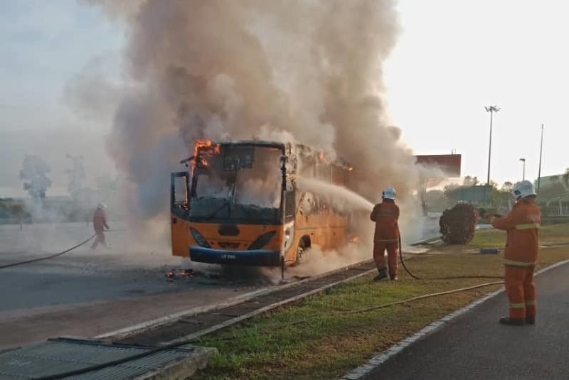 一輛載滿私立學校學生的馬來西亞校車2月20日早在士乃路通往迪沙魯的方向行駛時,不知何故著火燃燒,所幸車上38名學生及1名印裔司機及時跳下車,無人受傷。...