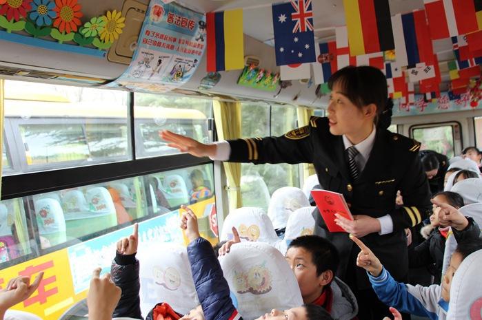 為弘揚憲法精神,培樹青少年從小樹立法治意識,在第5個國家憲法日來臨之際,交運溫馨校車在全市2100輛校車上陸續開展法治宣傳教育主題流動講堂。隨車照管員任亞男在車廂......