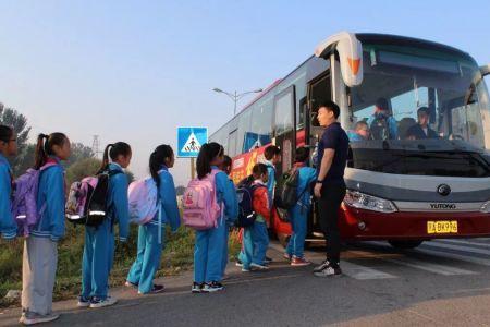 輛載滿學生的公交車在平谷區(qū)馬昌營中心小學停下,學生們背著書包,有序地下車,奔向?qū)W校……...