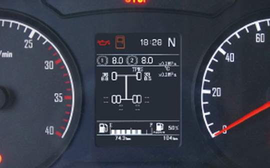 胎壓報警系統,監測輪胎氣壓和溫度,并在組合儀表顯示屏上實時顯示,當出現異常時發出報警。